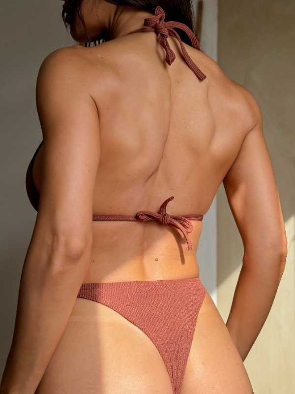 ✅️ Corpiño triángulo para atar, con detalle de estrella de mar en el centro, tazas soft desmontables