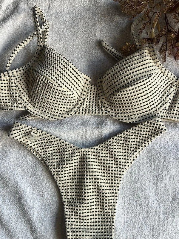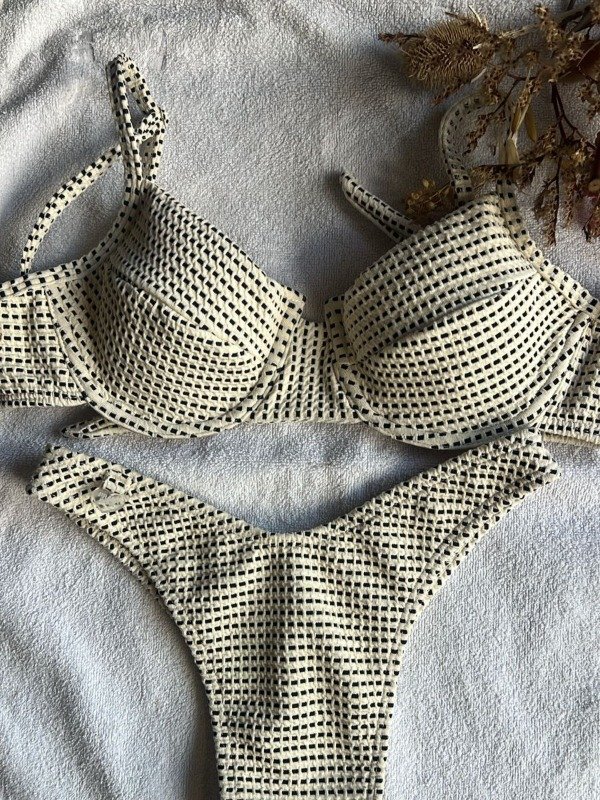 ✅️ Bikini texturada con aro, breteles regulables, espalda para atar, y tazas desmontables