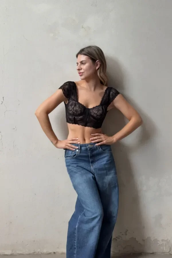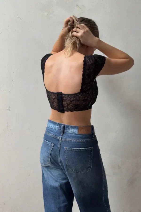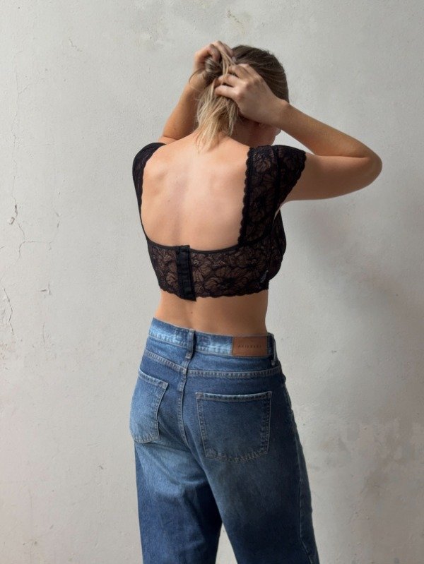 ✅ Corset de puntilla negro con forreria color hueso en las tasas para que no transparente
